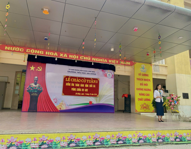 Thực hiện công văn số 4167/SGDĐT-CTTTHSSV ngày 21/22/2024 của Sở Giáo dục và Đào tạo về việc triển khai tháng hành động quốc gia phòng, chống HIV/AIDS năm 2024, sáng ngày 2/12/2024 trường Tiểu học Sài Đồng tổ chức hưởng ứng tháng hành động quốc gia phòng, chống HIV/AIDS năm 2024.