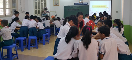 Ảnh: Cô giáo Hà Diệu Thúy trao đổi cùng các em học sinh sau khi tham gia tiết học
