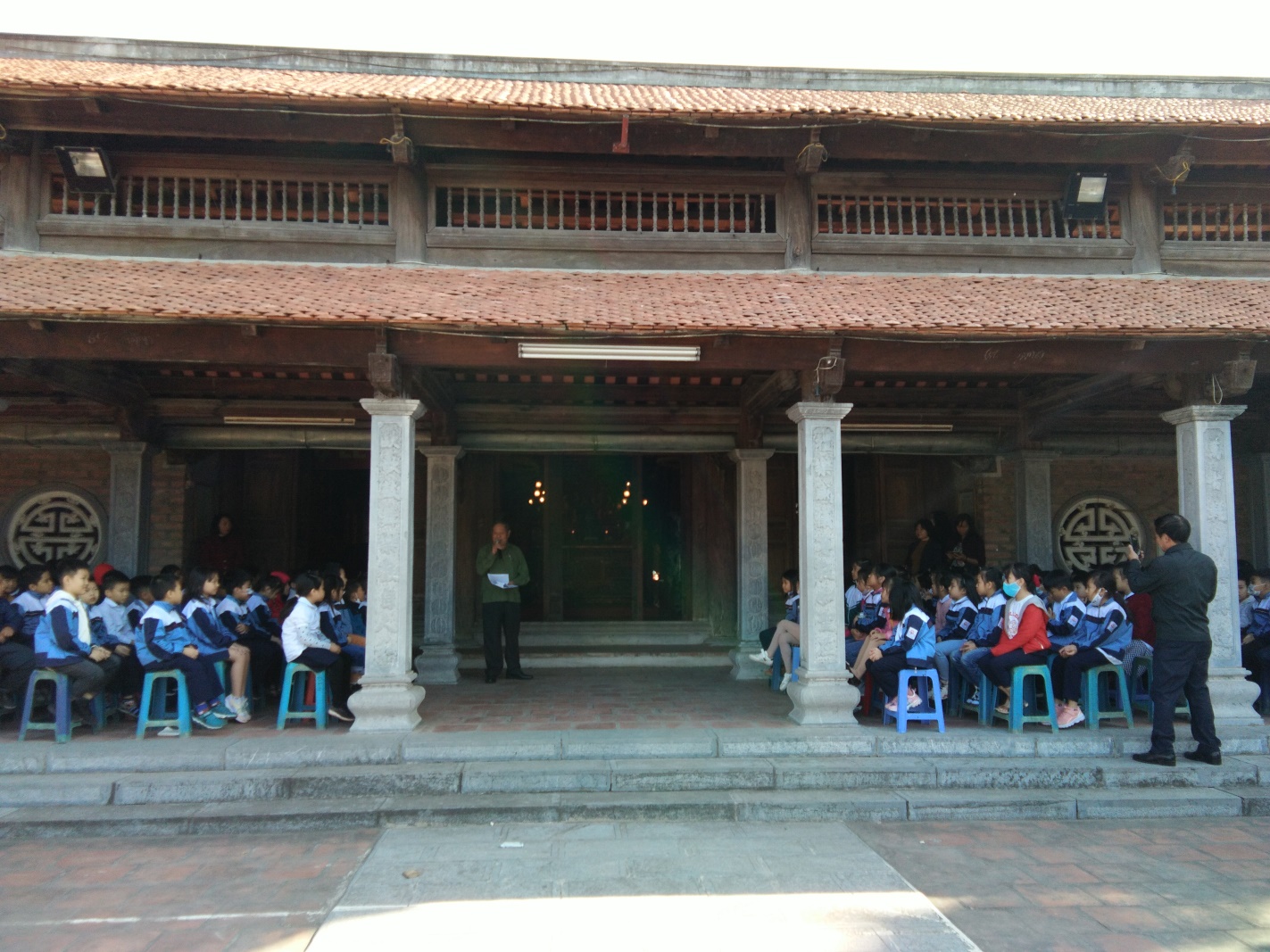 Theo kế hoạch, đúng 8 giờ sáng, cùng với các cô giáo trong Ban giám hiệu nhà trường và các cô giáo chủ nhệm, các bạn học sinh lớp 3 trường Tiểu học Sài Đồng háo hức và thích thú khi được tham gia chuyến tham quan đầy ý nghĩa này. Điểm dừng chân đầu tiên, các em được tham quan, tìm hiểu về đình Thổ Khối thuộc phường Cự Khối, một trong những ngôi đình đã được Bộ Văn hóa Thông tin xếp hạng là Di tích lịch sử, kiến trúc nghệ thuật vào ngày 09/01/1990. Ngôi đình được xây dựng trên khu đất cao và rộng, đình quang, hướng chính Tây nhìn ra sông Hồng. Qua phần giới thiệu của đại diện Ban quản lý di tích đình làng Thổ Khối, thầy và trò nhà trường được biết đình Thổ Khối thờ 6 vị thần: Ông thành Hoàng làng Đào Duy Trinh, Cao Sơn Đại Vương, Linh Lang Đại Vương, Bố Cái Đại Vương, Bạch Đà Đại Vương, Dị Mệ Đại Vương.