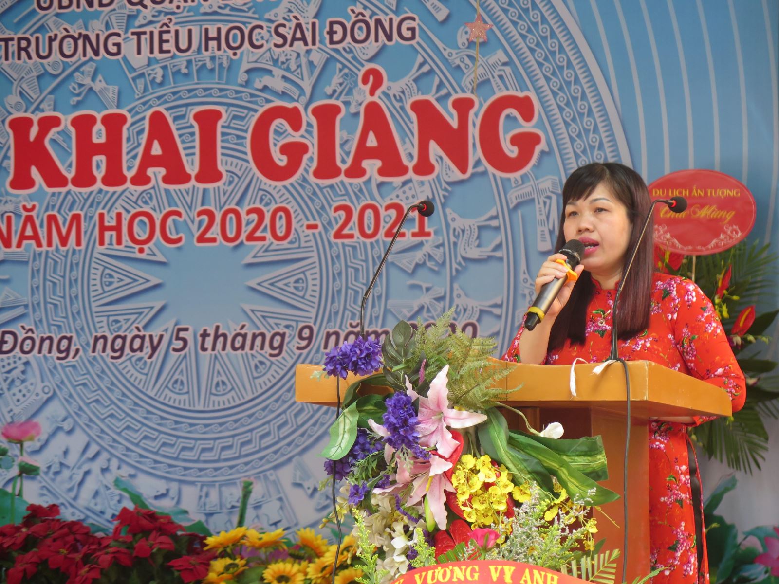 Trong buổi lễ long trọng, cô giáo Lê Thị Thanh Phương – Bí thư chi bộ, Hiệu trưởng nhà trường đã đọc diễn văn khai giảng và đánh trống khai trường. Trong bài phát biểu đầy tình cảm của mình, cô đã dành những lời chúc tốt đẹp nhất đến các em học sinh nhân dịp năm học mới: “Chúc toàn thể các em học sinh chăm ngoan học giỏi, xứng đáng là cháu ngoan Bác Hồ, là những học sinh viết tiếp lên trang truyền thống đầy tự hào của trường Tiểu học Sài Đồng”. Tiếng trống trường vang lên từng hồi rộn rã, một năm học chính thức được bắt đầu.
