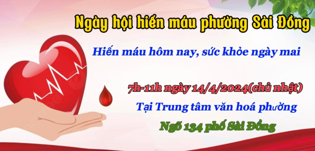Sáng ngày 14/04/2024, tại trung tâm văn hoá phường Sài Đồng, ngõ134 phố Sài Đồng- Long Biên -Hà Nội, Công đoàn trường Tiểu học Sài Đồng cùng với hội Chữ thập đỏ phường phối hợp với Viện Huyết học - Truyền máu Trung ương tổ chức ngày Hội hiến máu nhân đạo nhằm hỗ trợ các bệnh viện và bệnh nhân đang điều trị vì thiếu máu với thông điệp “Hiến máu hôm nay, sức khoẻ ngày mai”. Đây là hoạt động thường niên mang tính nhân đạo thu hút đông đảo cán bộ, công nhân viên chức tham gia thể hiện nghĩa cử cao đẹp và tinh thần nhân văn sâu sắc.