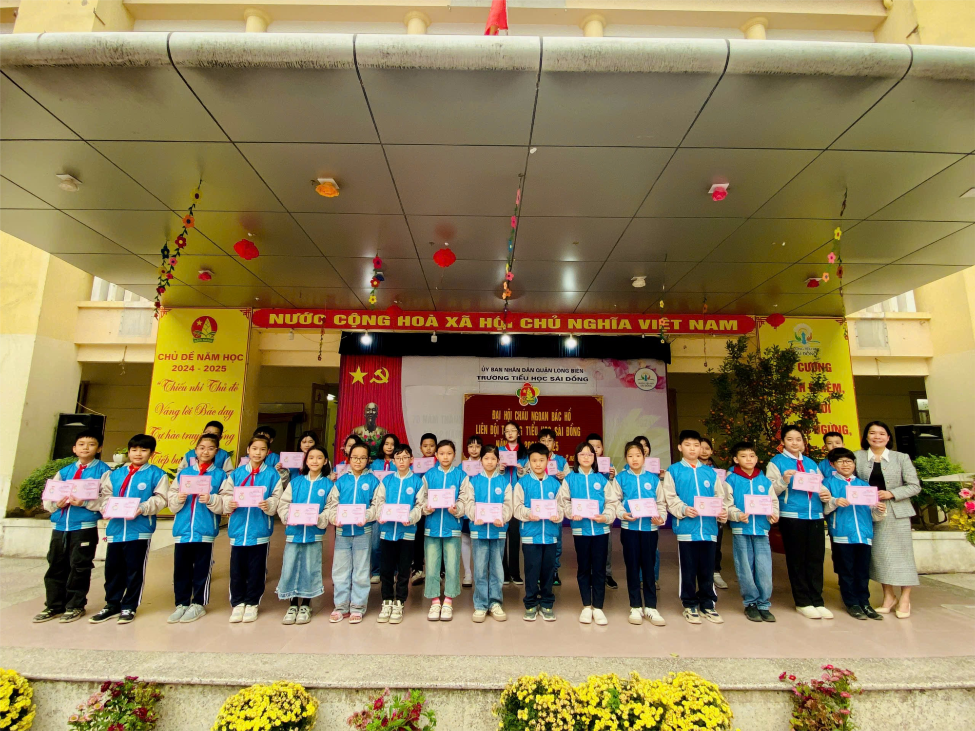 Trong khuôn khổ chương trình, Đại hội Cháu ngoan Bác Hồ của Liên đội Trường Tiểu học Sài Đồng đã biểu dương, tặng Giấy khen cho 52 học sinh là những Đội viên, Nhi đồng xuất sắc trong học tập, rèn luyện.