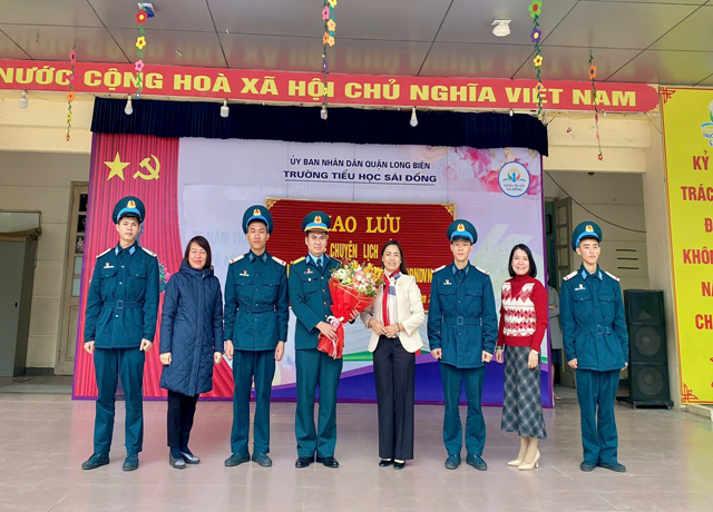 Thay mặt tập thể giáo viên và học sinh trường Tiểu học Sài Đồng, cô giáo Nguyễn Thị Yến – Hiệu trưởng, cô giáo Nguyễn Thị Thanh Vân – Phó hiệu trưởng và cô giáo Hoàng Thị Thanh Bình – Phó hiệu trưởng nhà trường lên tặng hoa, chúc sức khỏe đồng chí chiến sĩ Trung đoàn 280. Cảm ơn các đồng chí đã luôn nhiệt tình, tâm huyết truyền lửa cho các thế hệ trẻ hôm nay.