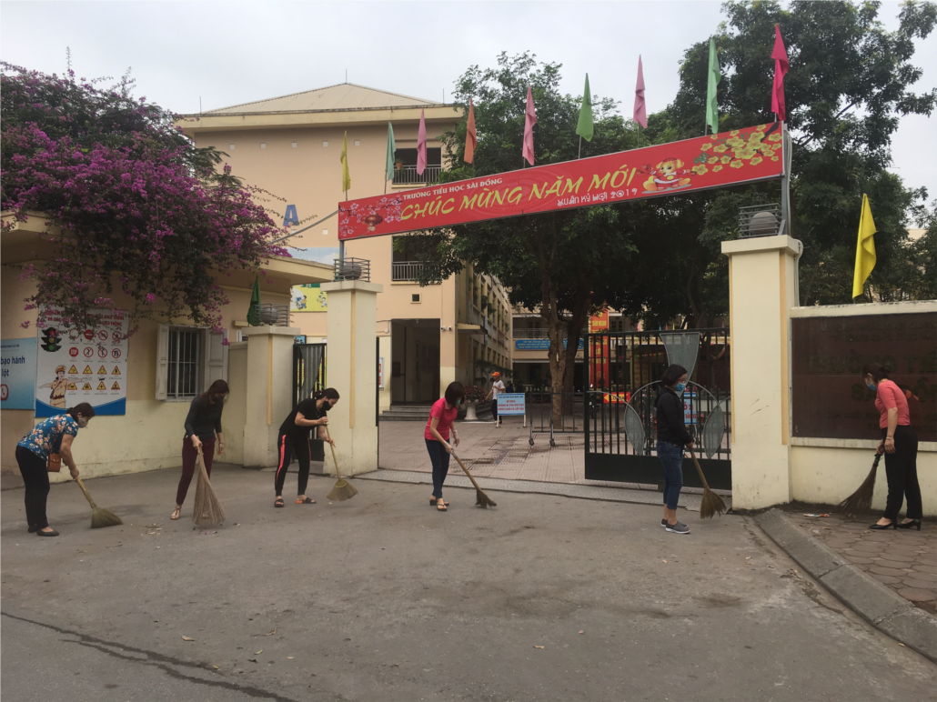 Thực hiện sự chỉ đạo của UBND quận Long Biên ngày 22 tháng 3 năm 2019 về việc hưởng ứng chiến dịch tổng vệ sinh môi trường trong các trường học phòng chống dịch bệnh tháng 3/2019, trong 2 ngày, ngày 22/3 và ngày 30/3, 100% cán bộ giáo viên, nhân viên và học sinh trường Tiểu học Sài Đồng tích cực tham gia hưởng ứng chiến dịch tổng vệ sinh môi trường trong trường học.