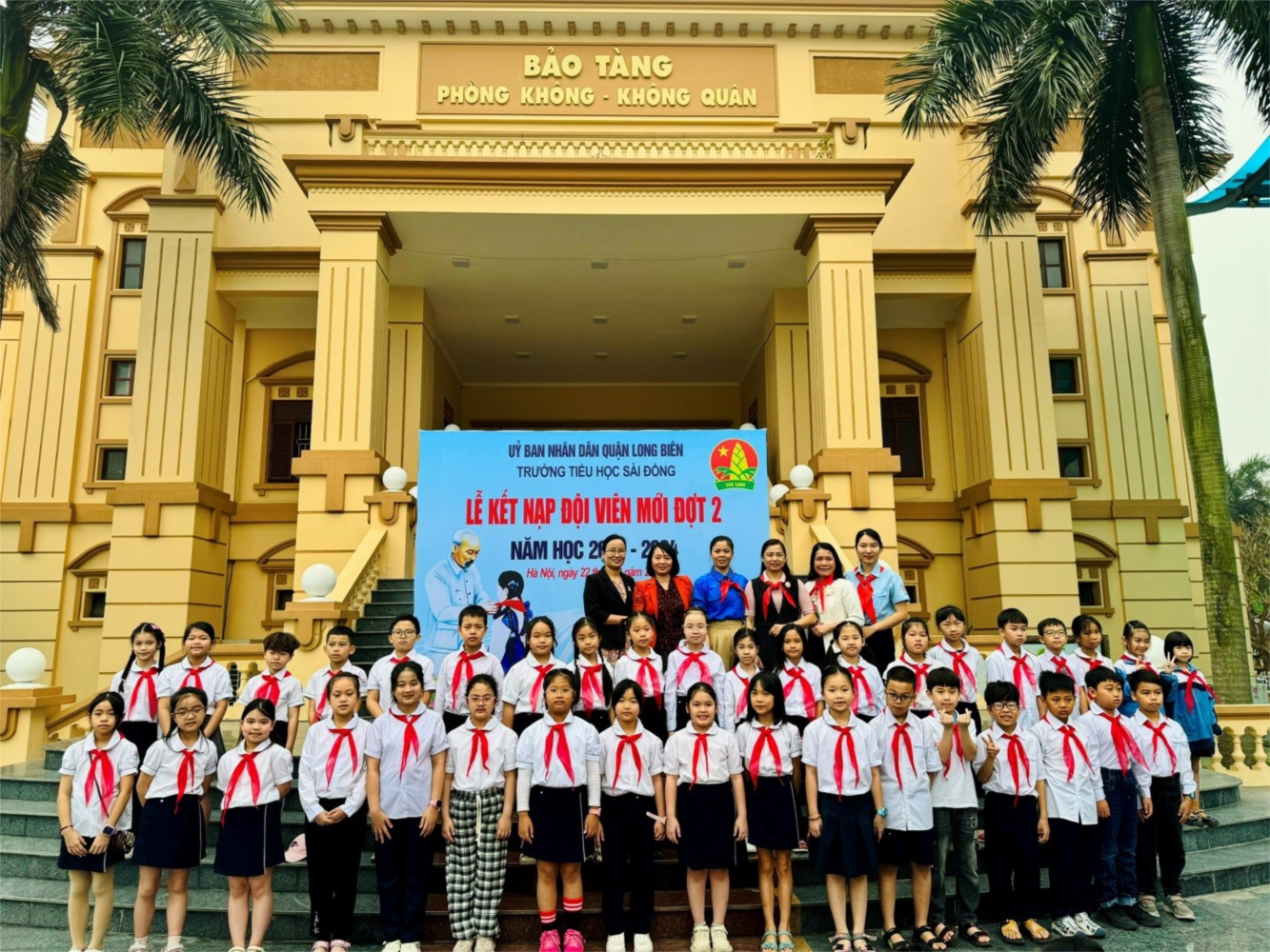 Nhân dịp chào mừng kỉ niệm 93 năm Ngày thành lập Đoàn Thanh niên Cộng sản Hồ Chí Minh 26/3, sáng ngày 22/3/2024, Liên đội trường Tiểu học Sài Đồng tổ chức lễ Kết nạp đội viên mới đợt 2 năm học 2022 - 2023 cho các con học sinh khối 3 tại Bảo tàng Phòng không Không quân, Khương Mai, Thanh Xuân, Hà Nội.