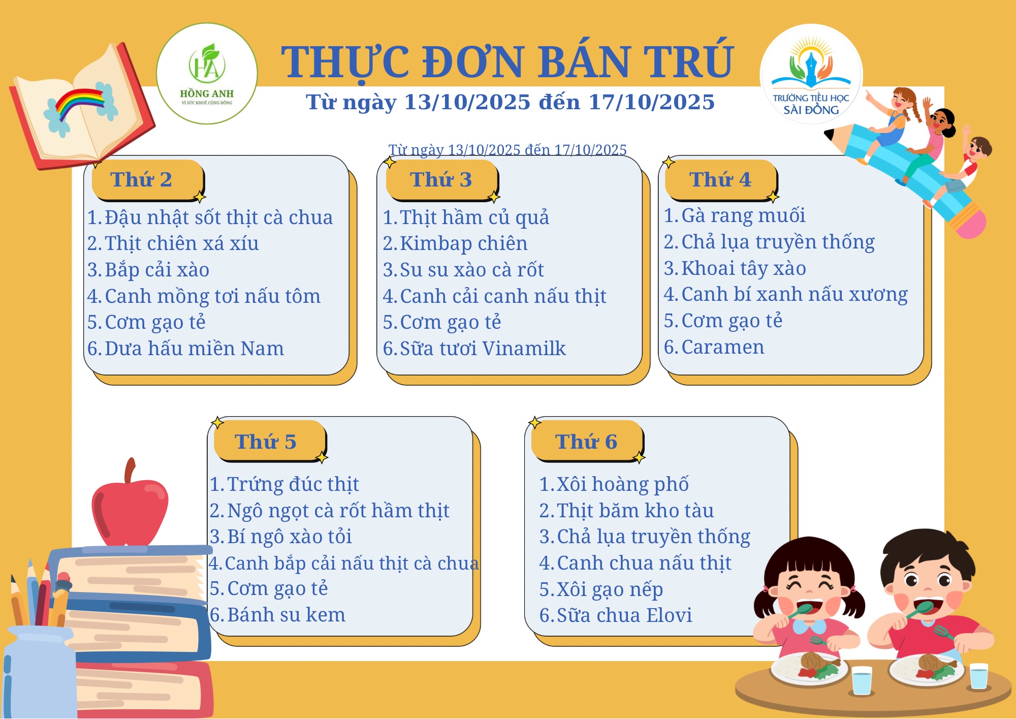 4 Thực đơn bán trú tuần 6 năm học 2025-2026  Thực đơn bán trú 13-10-2025