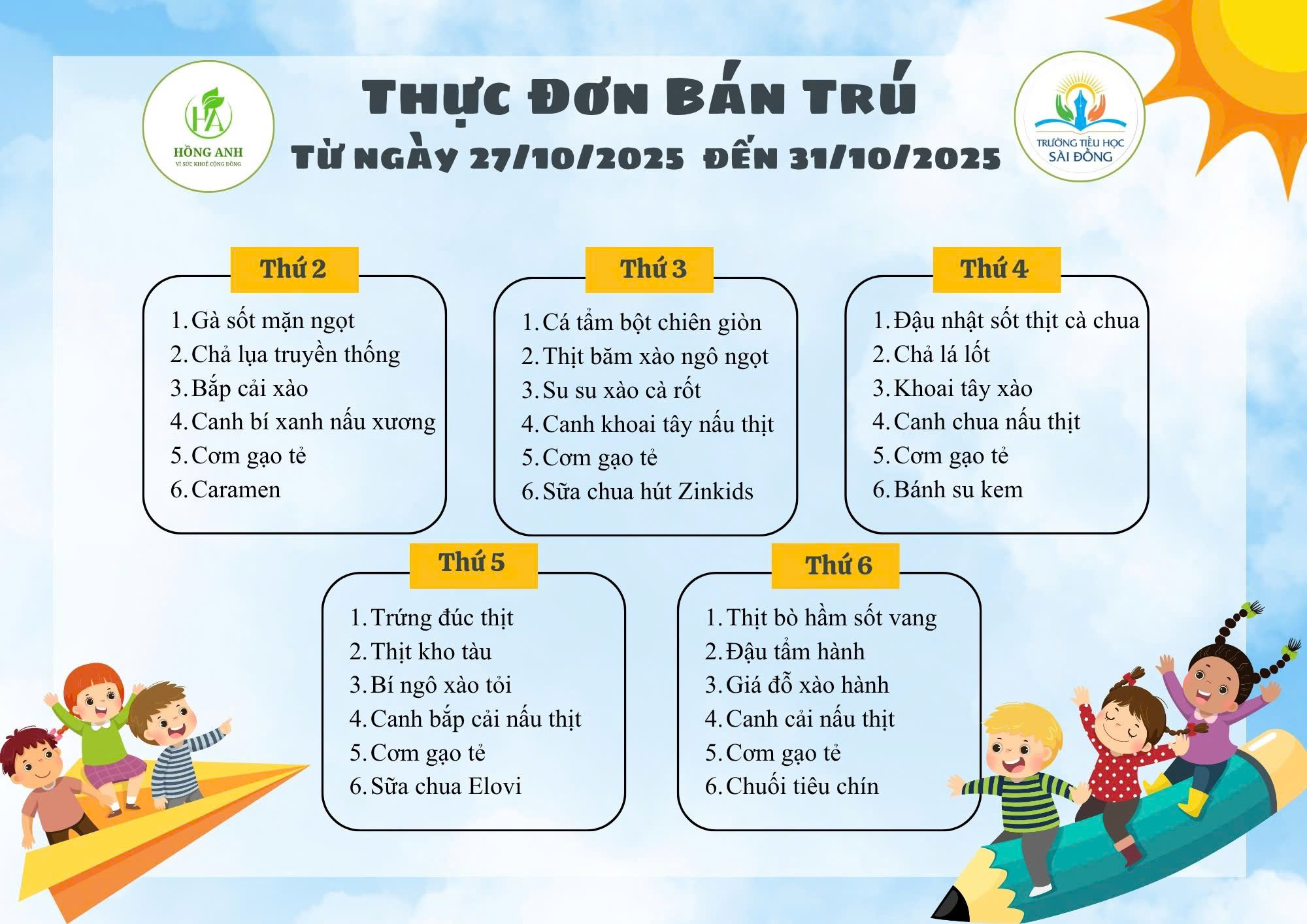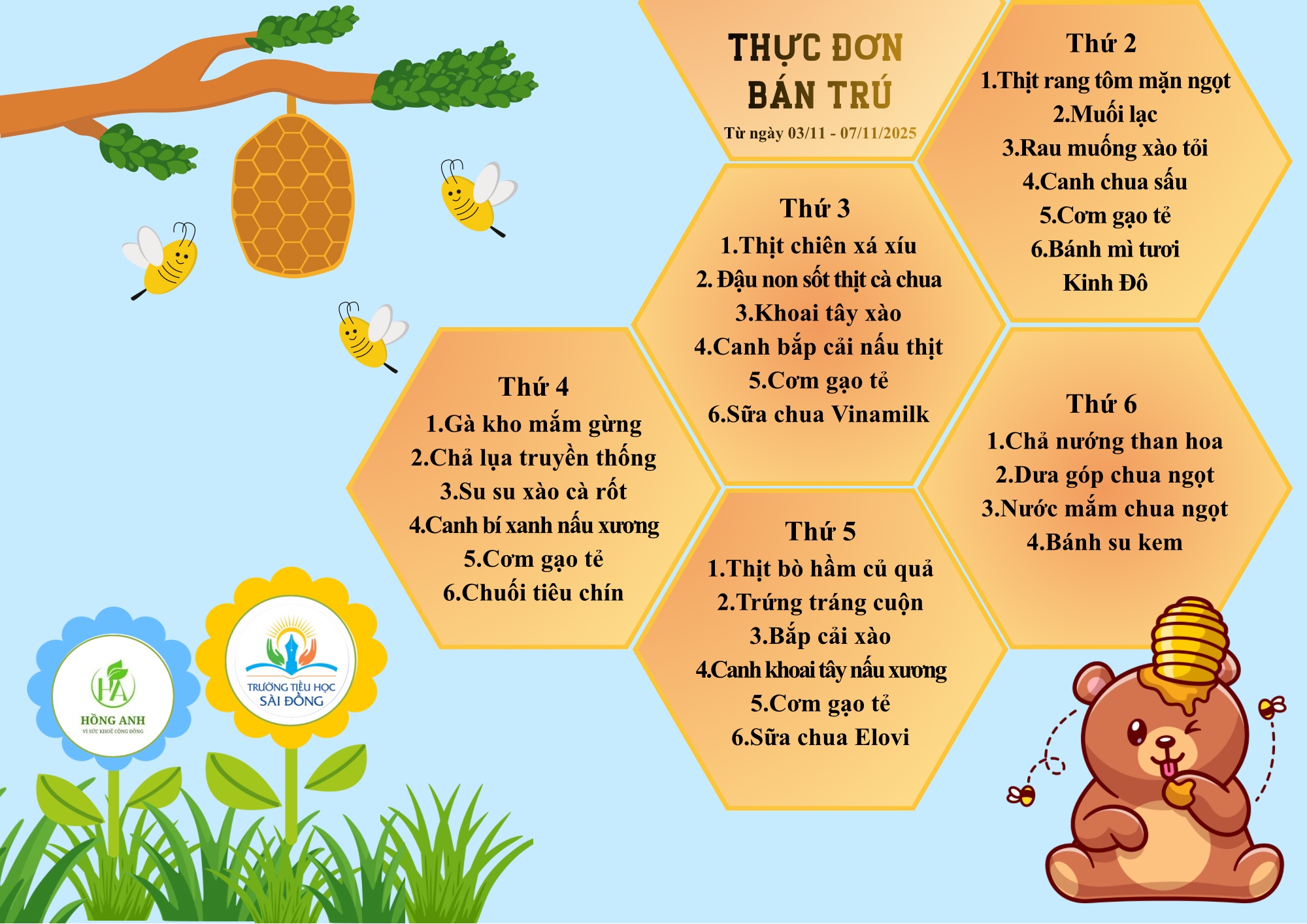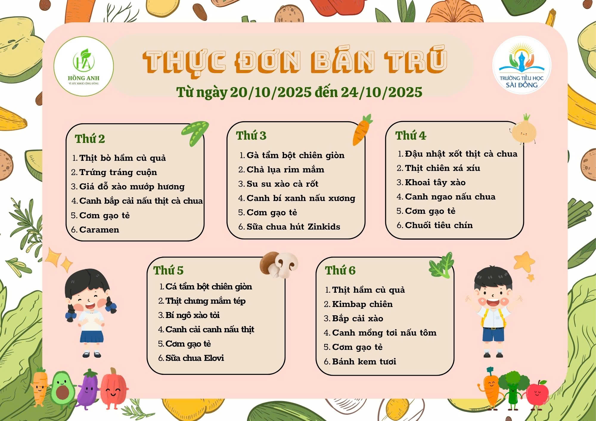 3 Thực đơn bán trú tuần 7 năm học 2025 - 2026  Thực đơn bán trú 20-10-2025