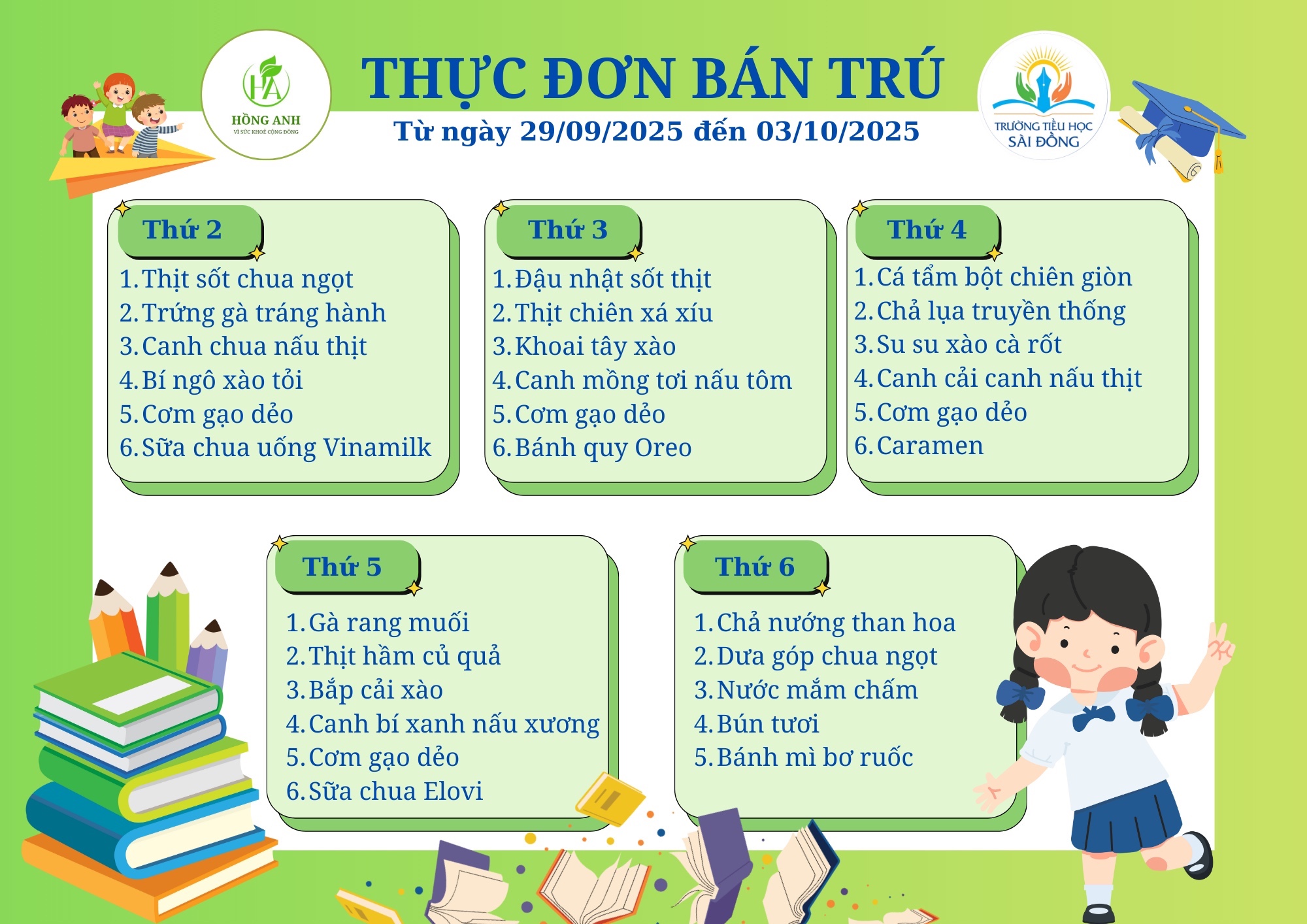 15 Thực đơn bán trú tuần 4 năm học 2025-2026  Thực đơn bán trú 29-09-2025